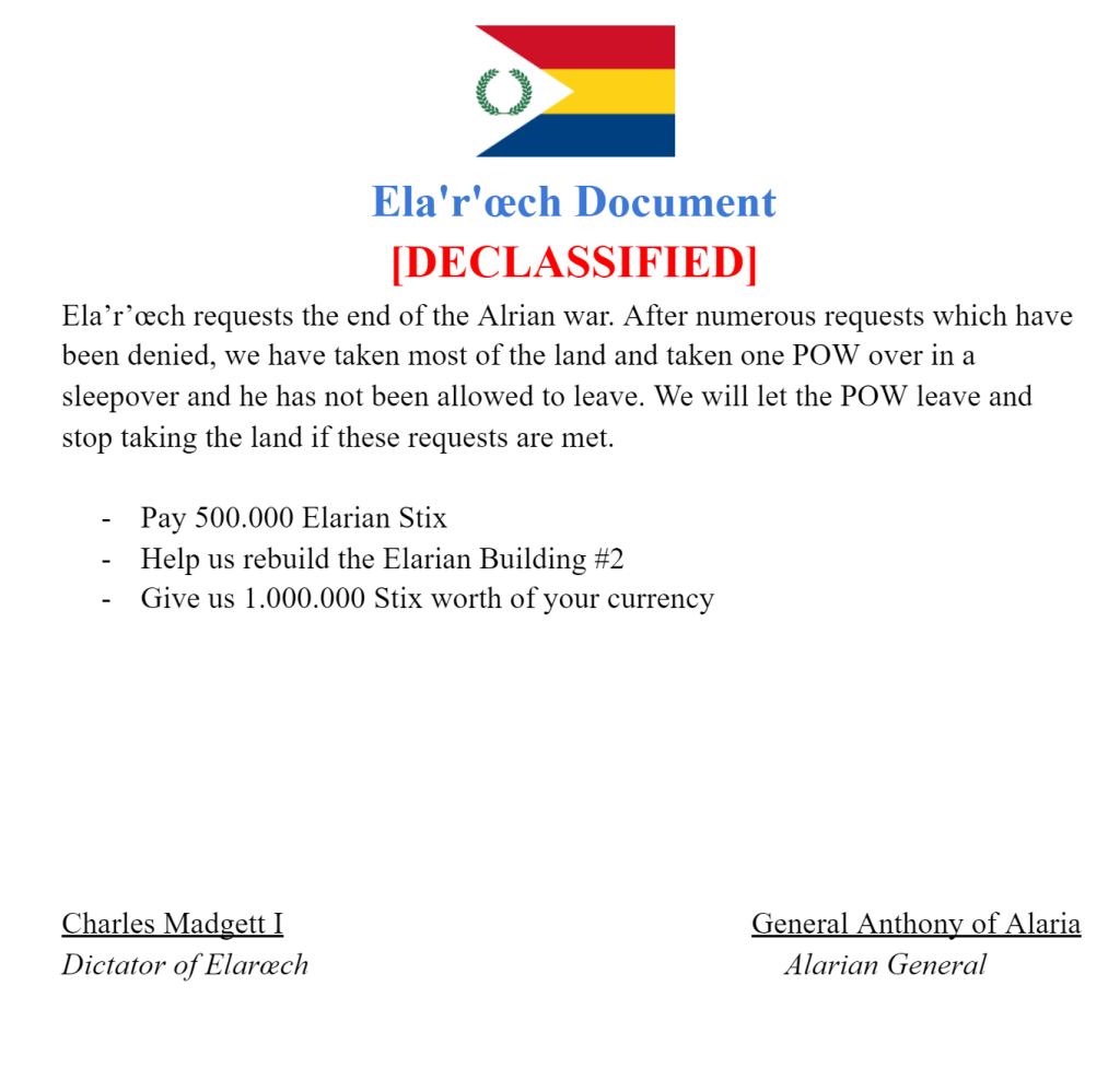 Finally, after 2 weeks at war, it’s over. The Alarian war is over. It finally ended at 11:00 AM CDT this morning.